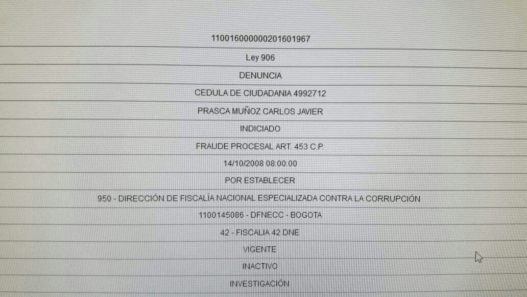 Generalmente cuando se dan estos fallos, el funcionario que se considera libre de culpa apela la decisión. Sin embargo, en la decisión, que fue adoptada en fallo de primera instancia, se determinó así mismo, declarar la prescripción de la acción disciplinaria respecto de uno de los contratos, el 033 del 26 de octubre de 2000, dado que a la fecha, ya habían transcurrido los cinco años previstos para adelantar la investigación. Es decir, el señor Prasca no se defendió pero sí ndejó prescribir la sanción.