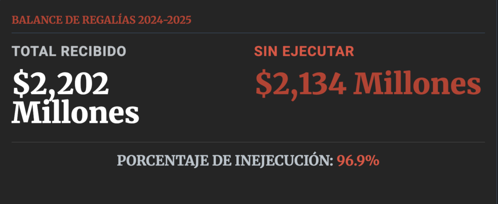 Si el análisis del presupuesto ordinario muestra una gestión inercial, el análisis de las Regalías revela una negligencia criminal. El Sistema General de Regalías (SGR) es el mecanismo mediante el cual la riqueza del subsuelo colombiano debe transformarse en bienestar para las regiones. Es dinero sagrado, destinado exclusivamente a proyectos de impacto.