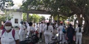 Allí un grupo de médicos generales que atiende en el servicio de urgencias del Hospital Universitario del Caribe, realizó un plantón para pedir elementos de protección personal que permitan hacerle frente al Coronavirus.