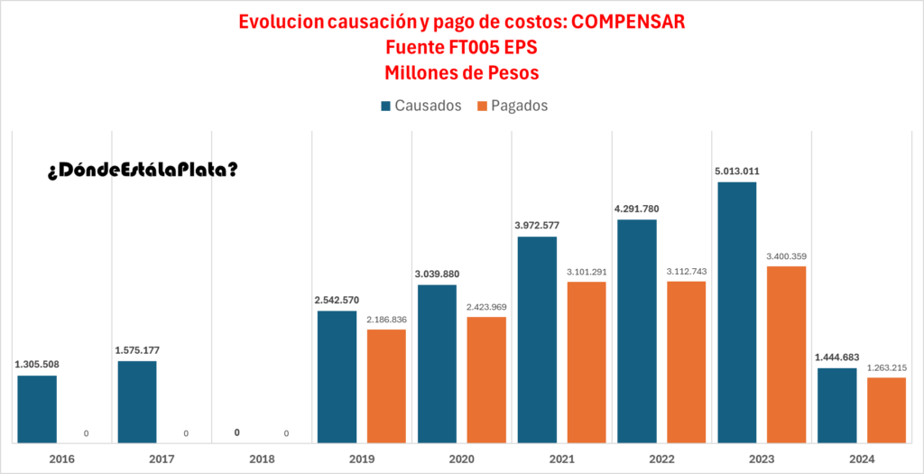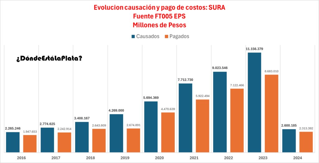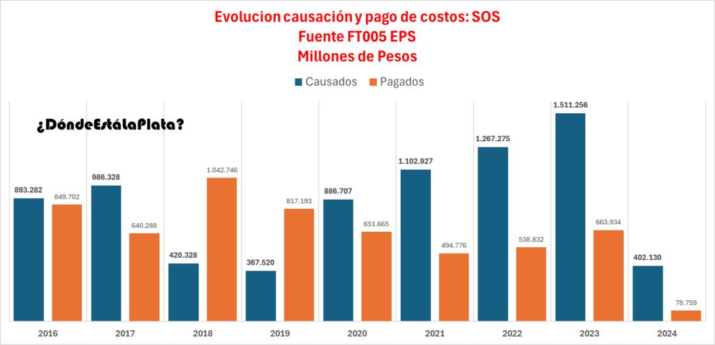 Esto no es exclusivo de la EPS S.O.S. Otras EPS como Compensar, Sanitas, Nueva EPS y SURA también presentan discrepancias escandalosas entre costos causados y pagados.