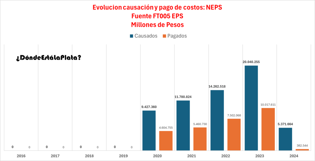 Las barras azules en el gráfico indican los supuestos costos de los servicios anuales, mientras que la barra naranja refleja lo que dicen haber pagado. La disparidad es tan grande que no puede ser ignorada. ¿Qué significa que los costos causados superen tan drásticamente los costos pagados? La respuesta es clara: están usando el dinero anticipado para cubrir deudas anteriores y futuras, rompiendo completamente el concepto de aseguramiento. ¿Inversiones seguras? ¡Ni pensarlo! Esta EPS no ha resguardado debidamente los fondos en ningún momento.