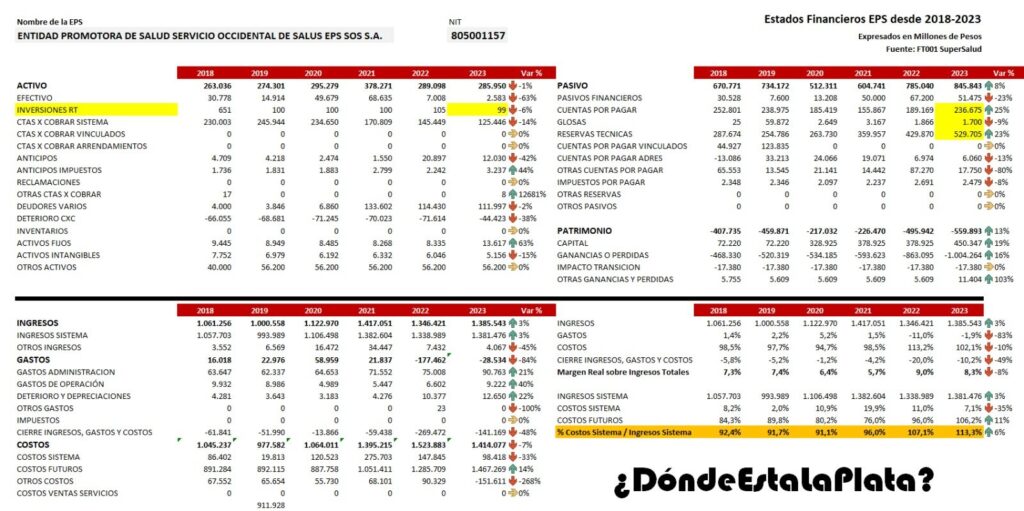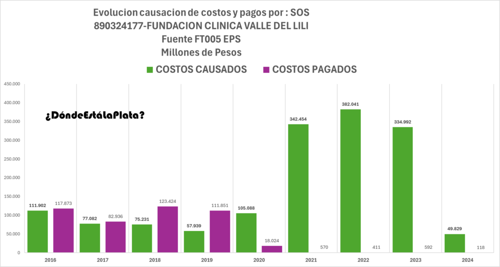 La EPS S.O.S. reporta costos causados y pagados con Fundación Clínica Valle del Lili, pero al revisar el saldo al 31/12/23, solo adeuda 87 mil millones de pesos. ¿Dónde está el resto del dinero? Las preguntas se acumulan: ¿Alteran la siniestralidad? ¿Manipulan sus estados financieros? ¿Por qué esta EPS recién fue intervenida en abril de 2024 si su situación financiera es desastrosa desde 2018?