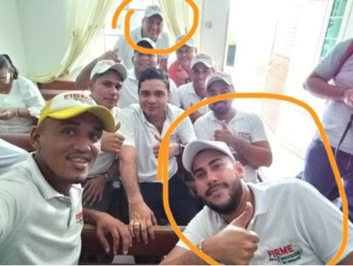 3. 4. 14.HUGO JOSE PEÑA CARRANZA y MANUEL BARRIOS, funcionarios de la Registraduría Municipal del Estado Civil Nacional en Ariguaní(Destacados en círculo amarillo), en plena campaña proselitista con el candidato a la Alcaldía DAVID FERNANDO FARELO DAZA.