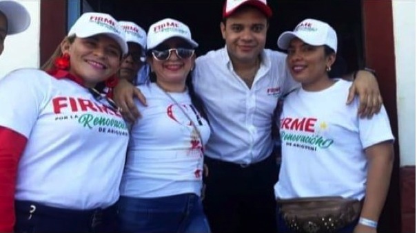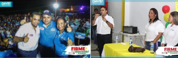 3. 4. 13. HUGO JOSE PEÑA CARRANZA (En destacado amarillo), funcionario de la Registraduría Municipal de Ariguaní, en plena campaña proselitista con el candidato a la Alcaldía DAVID FERNANDO FARELO DAZA.