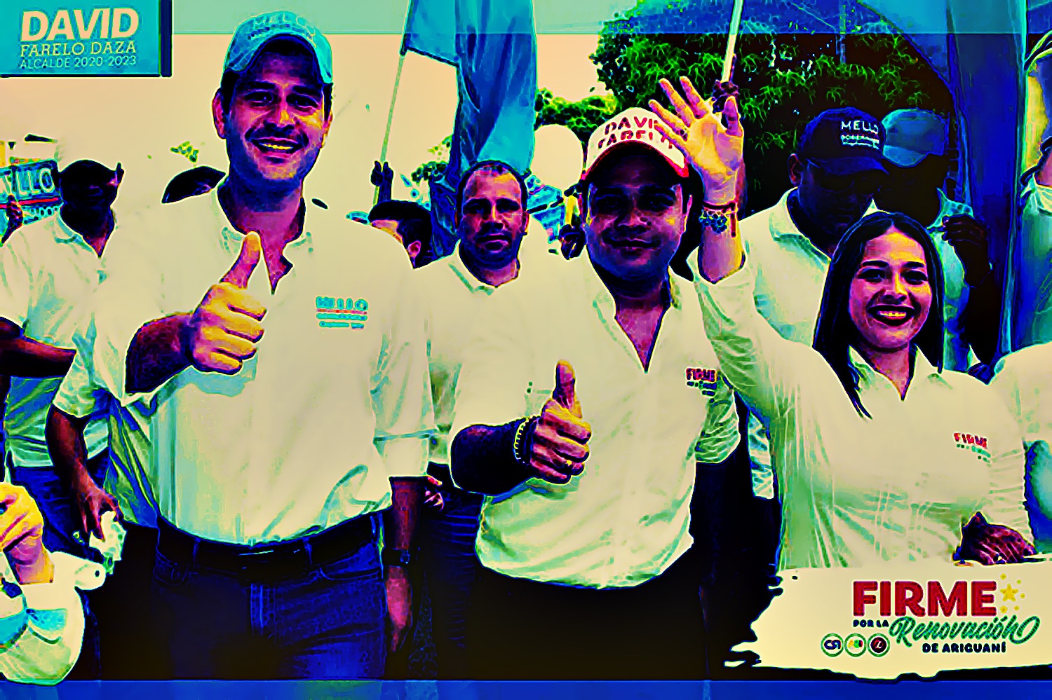 3. 4. 12. HUGO JOSE PEÑA CARRANZA (En destacado amarillo), funcionario de la Registraduría Municipal de Ariguaní, en plena campaña proselitista con el candidato a la Alcaldía DAVID FERNANDO FARELO DAZA .