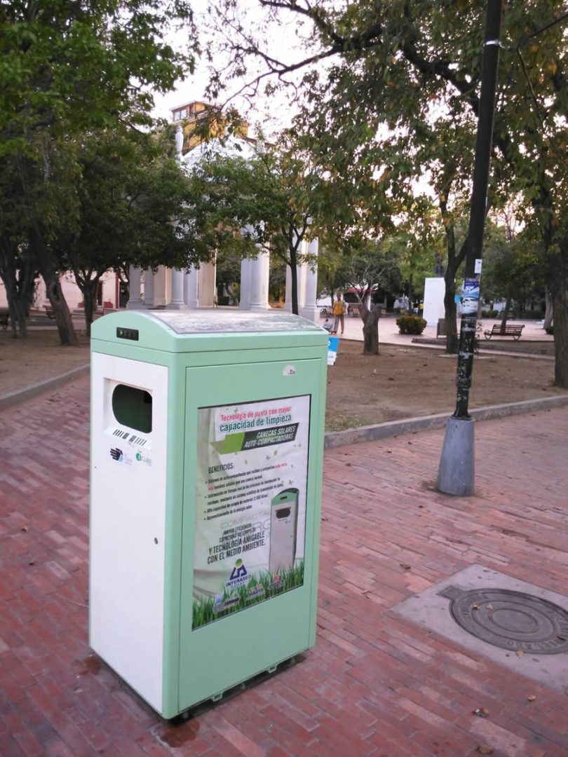 Las Canecas Compactadoras Solares fueron entregadas a la ciudad el día 7 de octubre de 2015 y hacen parte del cuarto Plan de Mejoramiento, implementado por la concesionaria Interaseo S. A. y su interventor Espa, en el que se invirtieron más de 1.812 millones de pesos.
