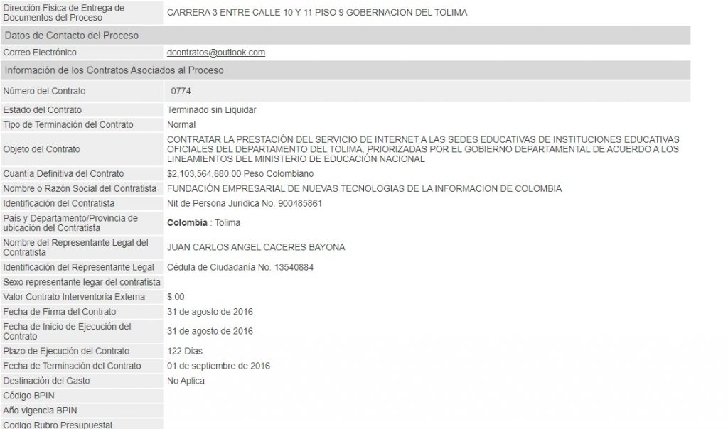 Aunque en teoría el negocio era interesante para todas las partes, la convocatoria cerró con un solo oferente, y fue Funtics, que solo en la administración de Villamizar ya había ejecutado 12 contratos por $ 41 mil millones para instalación de redes y suministro de internet.