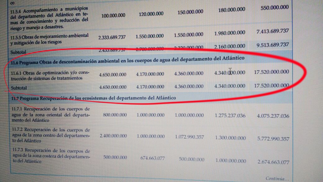 Verano basa su argumento en que el Plan de Gestión Ambiental Regional PGAR 2012-2022, en su línea estratégica “Gestión Integral del Recurso Hídrico” se adhiere al Plan de Acción Cuatrienal de la CRA (2016-2019) en el programa “Descontaminación en los cuerpo de agua el Departamento del Atlántico”, que a su vez, cuenta con el proyecto: “Obras de Construcción y Optimización de Plantas de Tratamiento de Aguas Residuales PTAR”. El gobernador se ampara de esto para tartar de cumplir su plan de acción y programa de gobierno sin poner un peso.