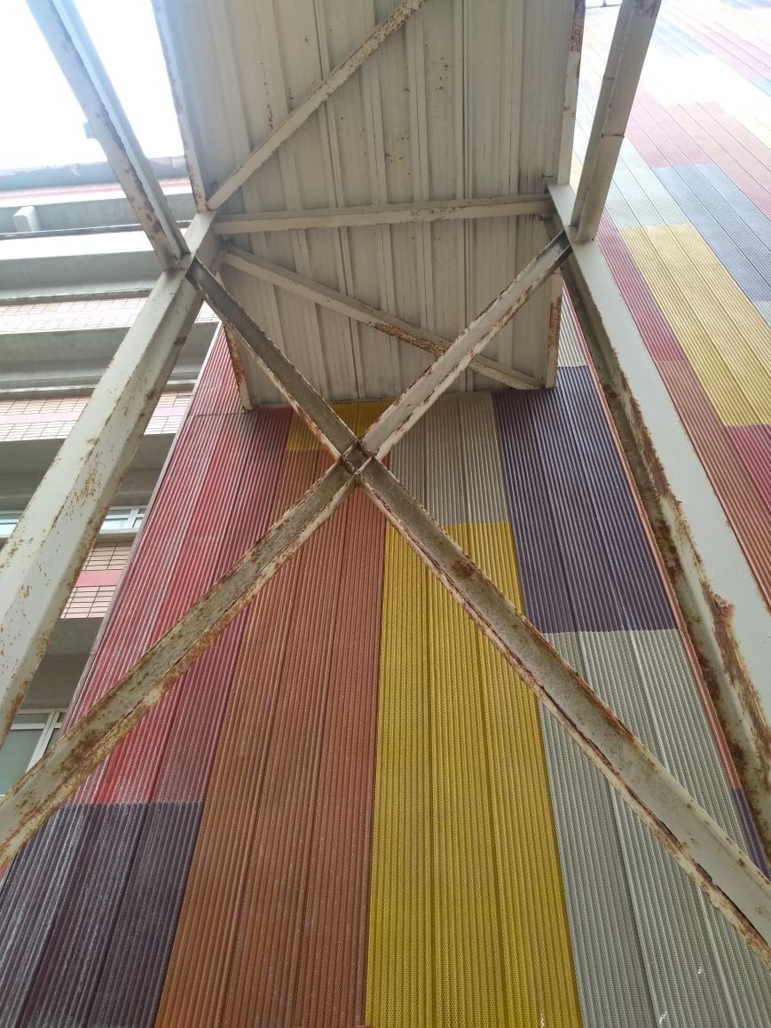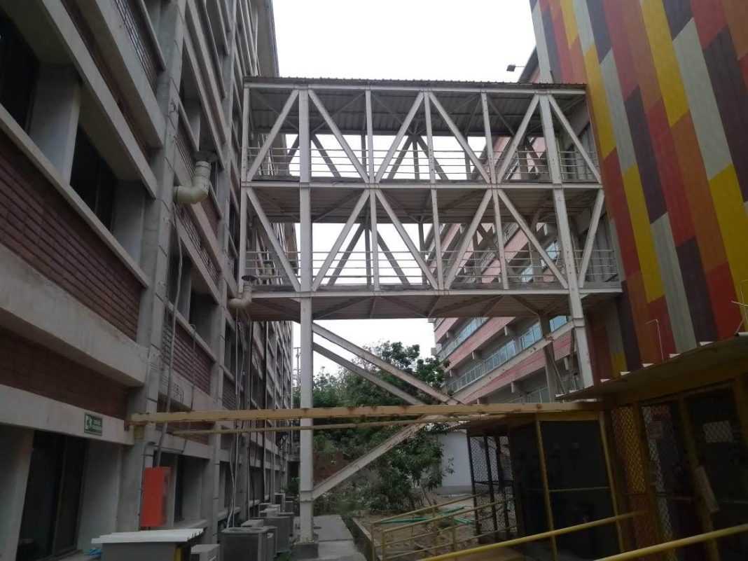 Cuando los nuevos contratistas entregaron lo pactado para terminar el edificio, la universidad se dio cuanta que éste no contaba con áreas de acceso, algo increíble que nadie dio explicación. Para subsanar este error craso, construyeron un puente que viene del cuarto piso edificio contiguo al Bloque i, totalmente antiestético e inseguro.