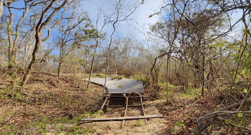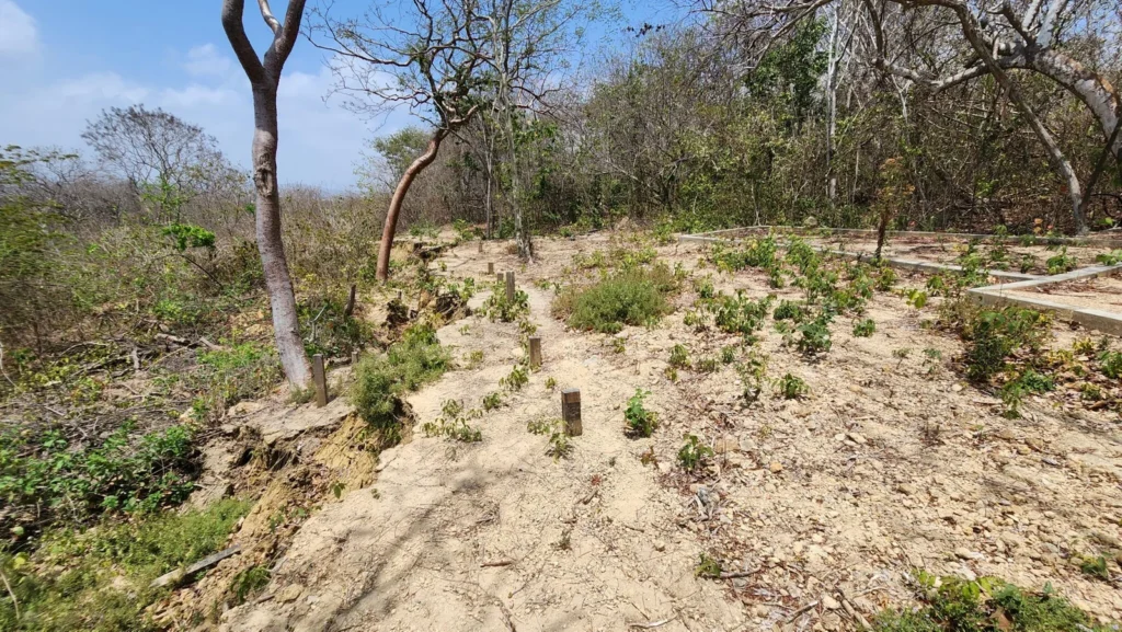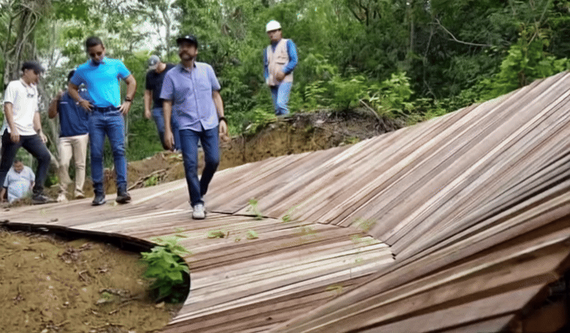 El panorama empeora con cada paso: una segunda estructura desmantelada, con apenas 26 tablas restantes de lo que fue un peralte de giro. Metros más adelante, la tercera plataforma ni siquiera existe ya—colapsada por un desbarrancamiento que nadie previó o nadie quiso prever.
