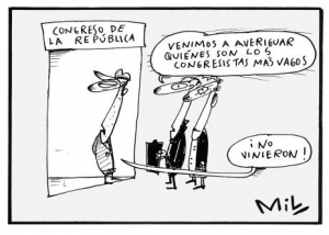 La Confederación Colombiana de Ciudadanos Contra la Corrupción se une a la campaña de investigación y visibilización de los congresistas más ausentes de su trabajo, que la colega Katherine Juvinao ha iniciado y divulga a través de las redes sociales. Se olvidan los congresistas que sus patrones somos todos los ciudadanos colombianos que pagamos sus millonarios sueldos y a nosotros nos deben rendir cuentas. Si no trabajan, los echamos.