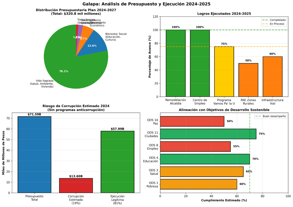 Más allá de los titulares sobre remodelaciones y programas con nombres rimbombantes, este análisis va al corazón del problema: ¿la inversión de miles de millones de pesos se ha traducido en una mejora real para la vida de los ciudadanos? Mientras el Plan de Desarrollo 2024-2027, con un presupuesto de más de $320 mil millones de pesos [1], promete una «Tierra de la Esperanza», la realidad en las calles de Galapa sigue marcada por el miedo al hurto, la falta de oportunidades para los jóvenes y un sistema que, históricamente, ha sido un terreno fértil para la ineficiencia y la corrupción, donde se estima que $13.6 mil millones anuales podrían estarse desviando por falta de controles efectivos [1].