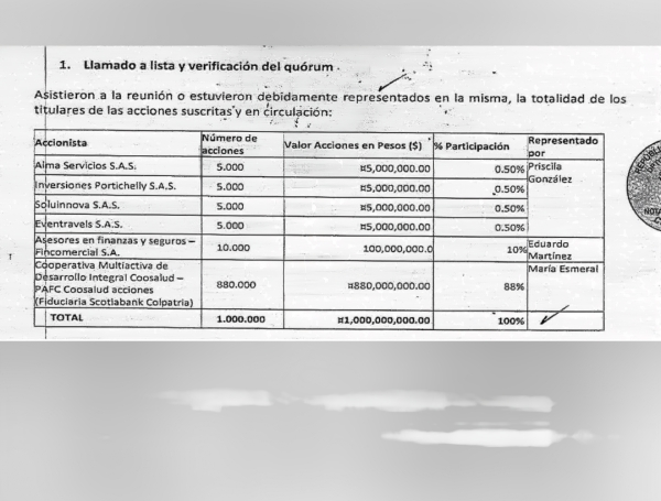 Y el 88% de Coosalud Inversa pertenece a Cooperativa Multiactiva de Desarrollo Integral Coosalud. El valor total de las acciones es de 81.000 de pesos.