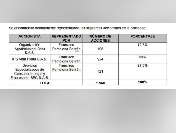 Los socios de Fincomercial SA son la Organización Agroindustrial Barú SAS, con el 12,7% de participación; la IPS Vida Plena SAS, con el 60%; y Servicios Especializados de Consultoría Legal y empresarial (SEC SAS.), con el 27,3% de las acciones. ¿Quiénes están detrás?