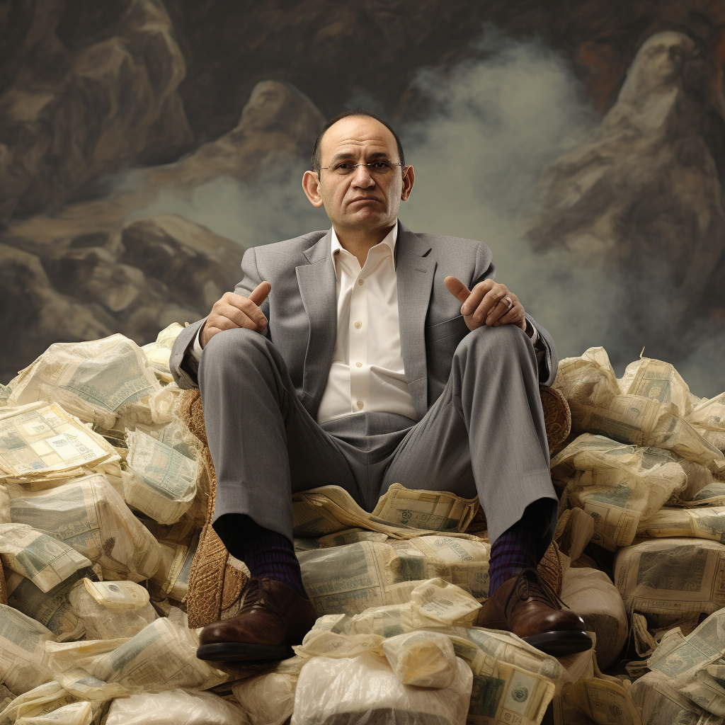 El gobernador del Norte de Santander, Silvano Serrano, sentado sobre una montaña de contratos y dinero. Imagen generada con AI.