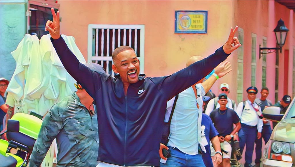 Durante 12 días Will Smith fue un cartagenero más. Para compensar su ocupación del espacio que ocupan los vendedores, según la veeduría del espacio público de Cartagena (Veespú), Smith decidió entregar 100 millones de pesos para unos 600 vendedores informales que ocupan esquinas y andenes.