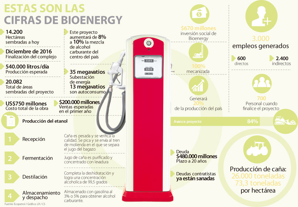 A pesar de que financieramente el proyecto no era viable, se dio continuidad a su construcción, pagando aproximadamente US 434 millones de dólares más respecto del caso de negocio presentado en octubre de 2011; situación que unida al deficiente desarrollo del componente agrícola, originó que no se diera la productividad esperada, por cuanto BIOENERGY S.A. y BIOENERGY ZONA FRANCA S.A.S. se encuentran en liquidación, lo que hace imposible obtener los flujos de recursos que permitan su recuperación.